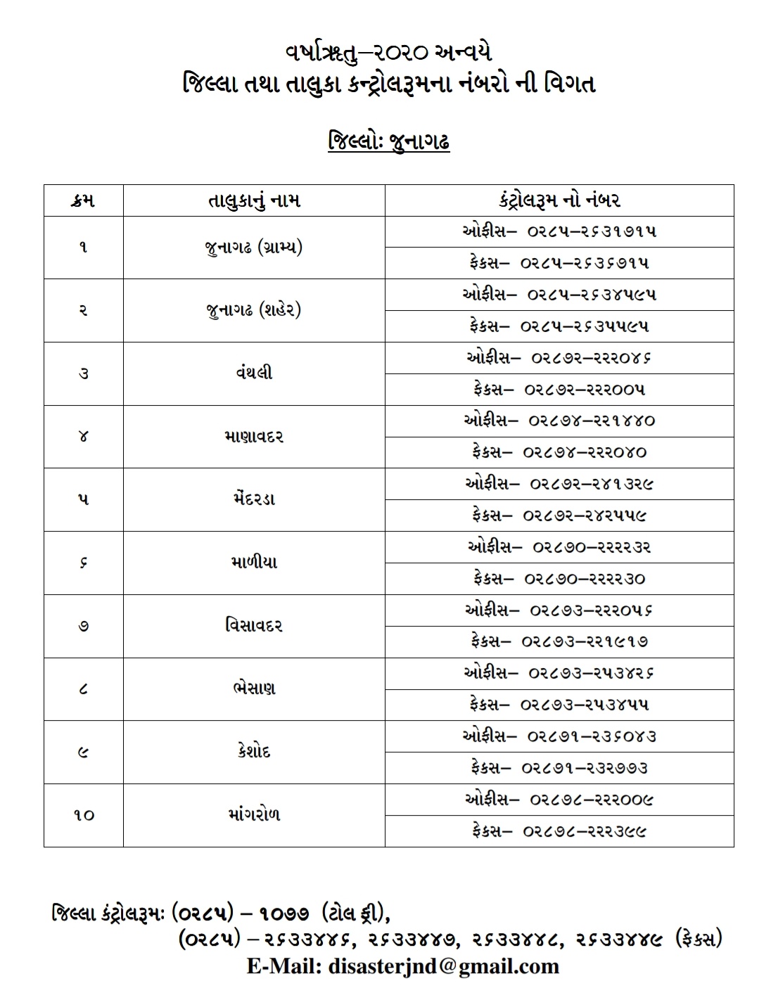 Collector Junagadh On Twitter Monsoon 2020 Control Rooms In All The Talukas Are Operational District Disaster Control Room Number 02852633446 Is Now On Whatsapp Too Police Control Room Whatsapp Number 9512211100 Pkumarias